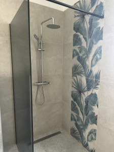 A lakásban hőszivattyús hűtő-fűtő rendszer van kiépítve, padlófűtéssel.