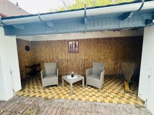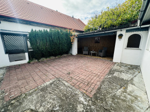 A 259 m²-es telek részben térkövezett, és kis zöldfelületet is kínál a kikapcsolódáshoz. A 10 m²-es fedett terasz, a grillező, valamint a különálló garázs és pince tökéletes helyszínt biztosítanak családi, baráti összejövetelekhez.