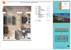 A lakás 43 m2  ,10m2-es terasszal